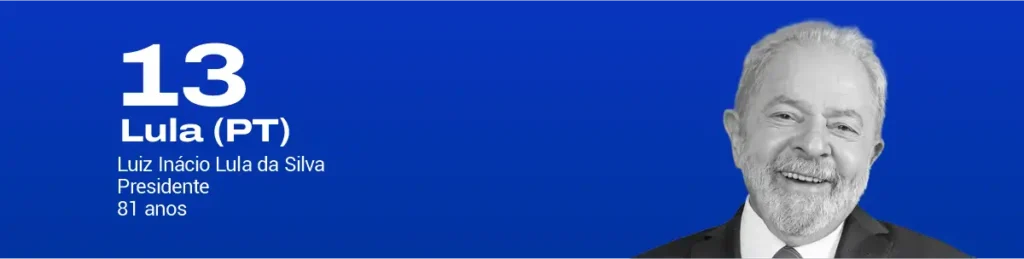 Ex-metalúrgico e líder sindical, Lula é uma das principais figuras políticas do país. Foi presidente da República em dois mandatos consecutivos e retornou ao cargo em 2022. Agora, é pré-candidato à reeleição, buscando um novo ciclo no comando do Executivo federal.