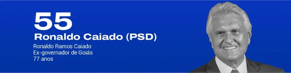 Médico e produtor rural, Caiado tem longa trajetória política, passando pela Câmara dos Deputados e pelo Senado antes de chegar ao governo de Goiás. Foi uma das principais lideranças da bancada ruralista e defende pautas ligadas ao agronegócio e à segurança pública.