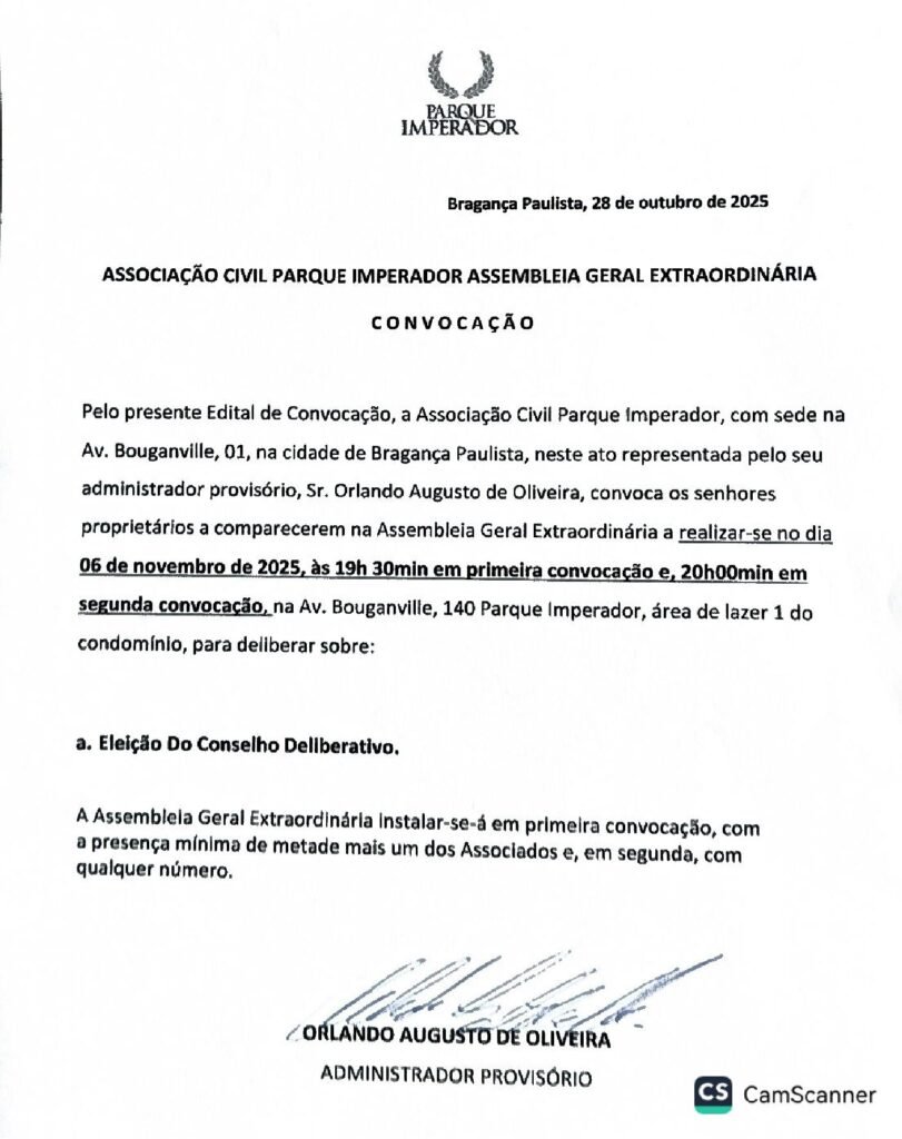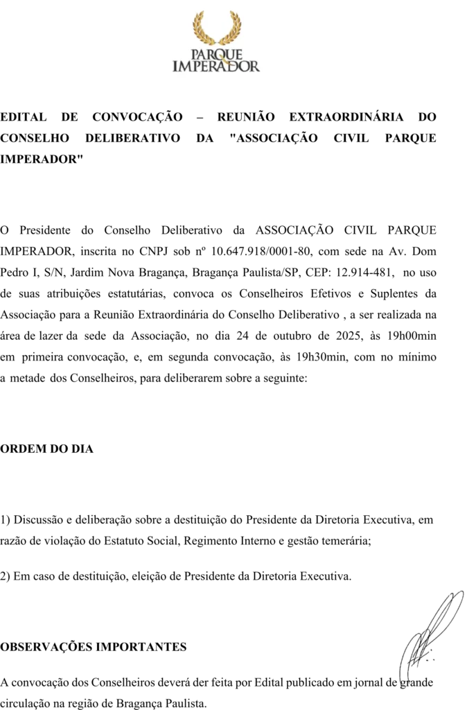 ASSOCIAÇÃO CIVIL PARQUE IMPERADOR ASSEMBLEIA GERAL EXTRAORDINÁRIA