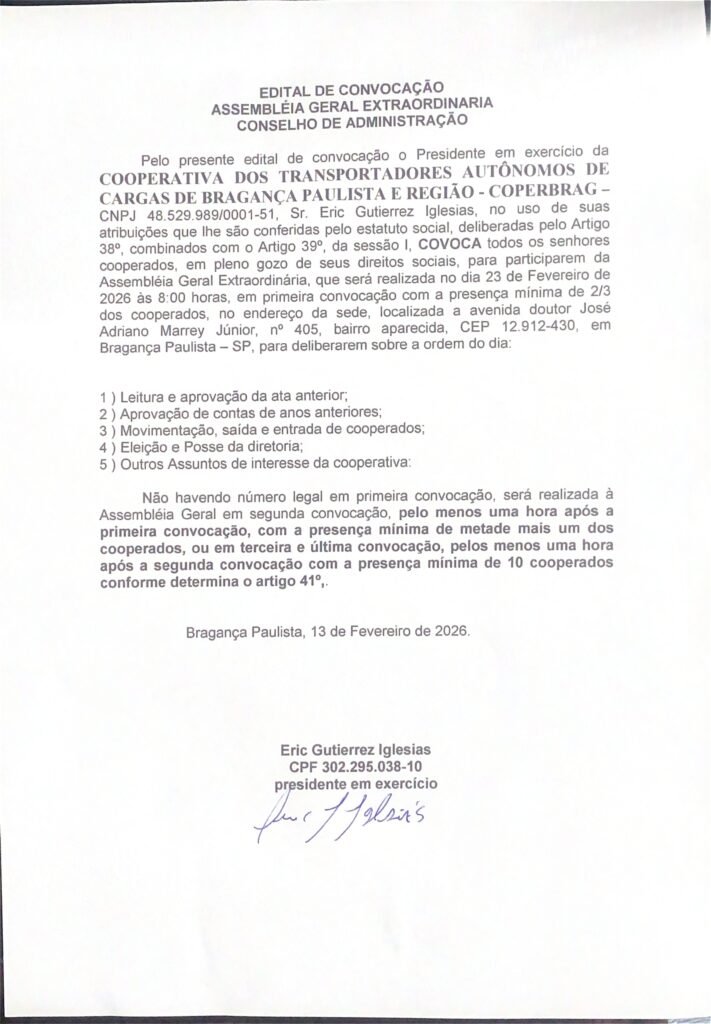 EDITAL DE CONVOCAÇÃO – 30/10/2025